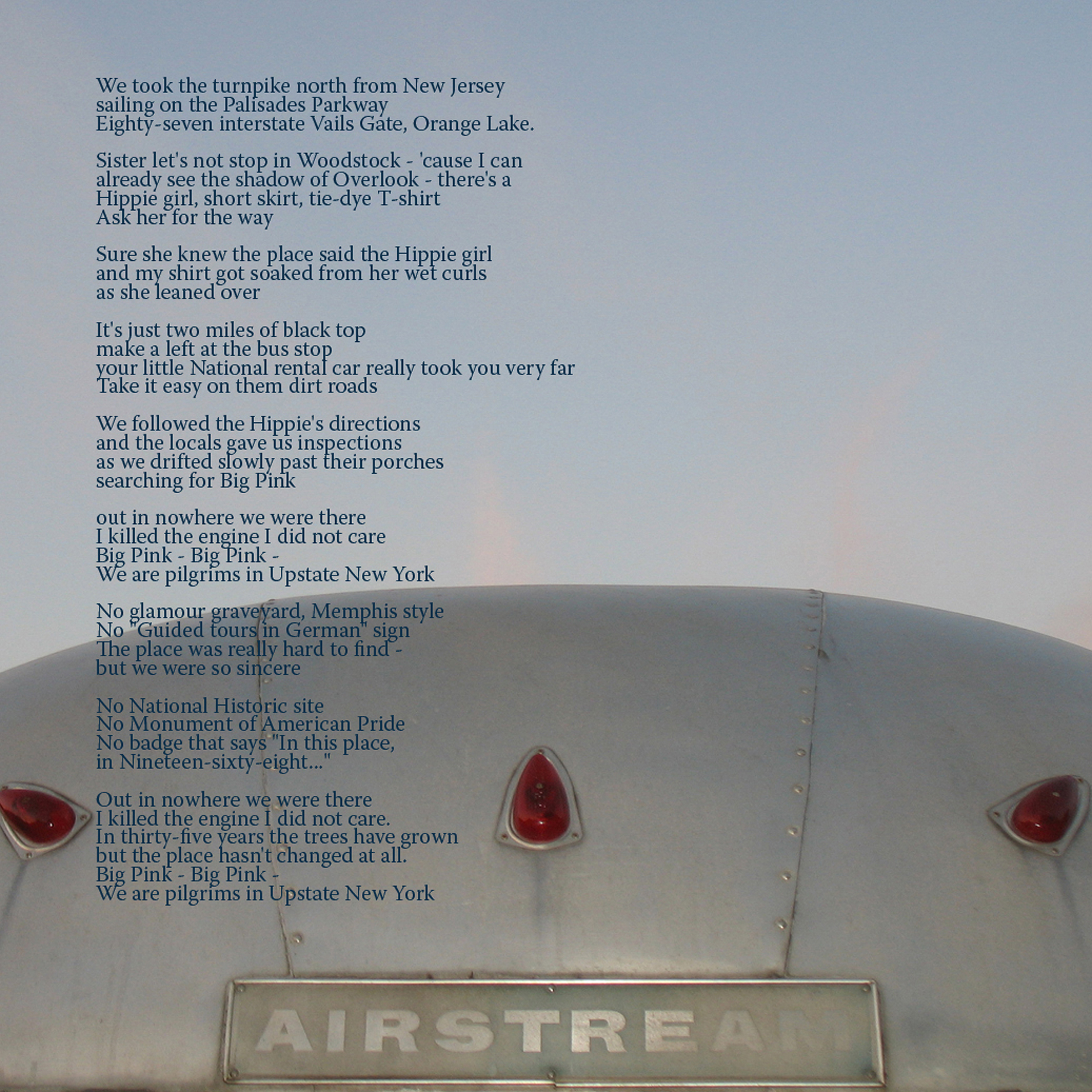 2003. NYC had worn us down, so we headed north up the Hudson valley to rest our souls. The afternoon sun found us stalled on a dirt road somewhere on the slope of Overlook Mountain in West Saugerties, NY, all the information we had was the back cover of the legendary Album by The Band. We were about to call it quits. It took a while to write and record this song. It was finished in 2006. |